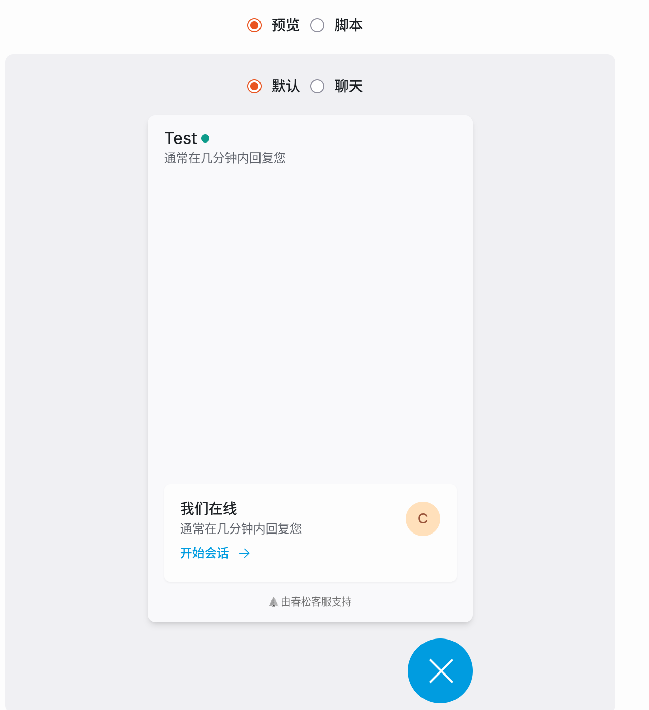 - 响应时间显示: 开启后会显示“通常在几分钟内回复”,增加用户信任感。