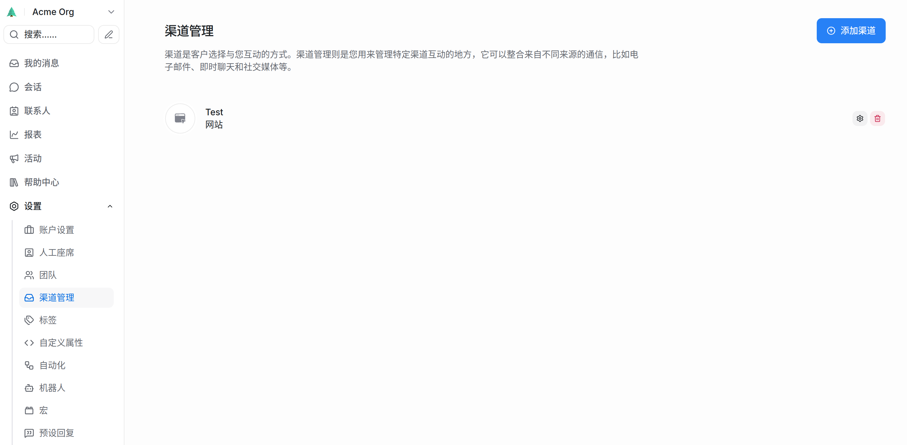 渠道(Inbox)是客户进入系统的“大门”。网页插件是最常见的接入方式。