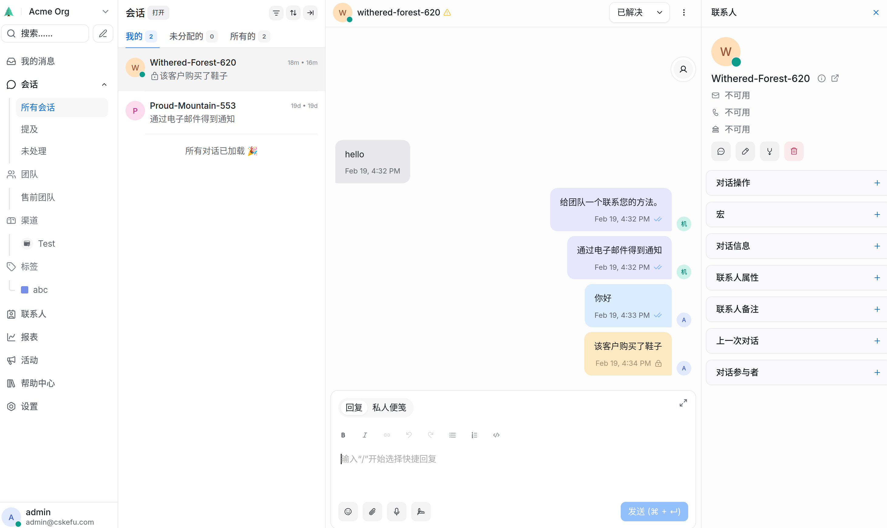 - 结束会话: 问题解决后,点击 “标记为已解决 (Resolved)”。这会保持你的工作台整洁。