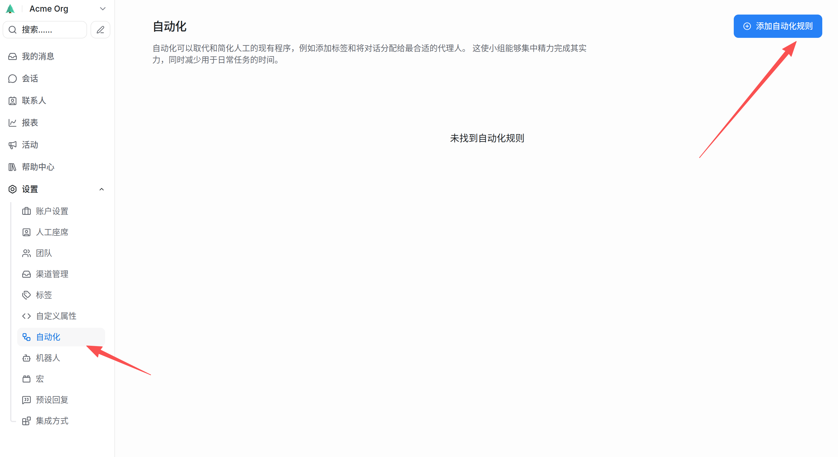 - 操作 (Actions): 系统要做什么?(例如:给对话打标签、分配给特定的人、发送一条自动回复)。