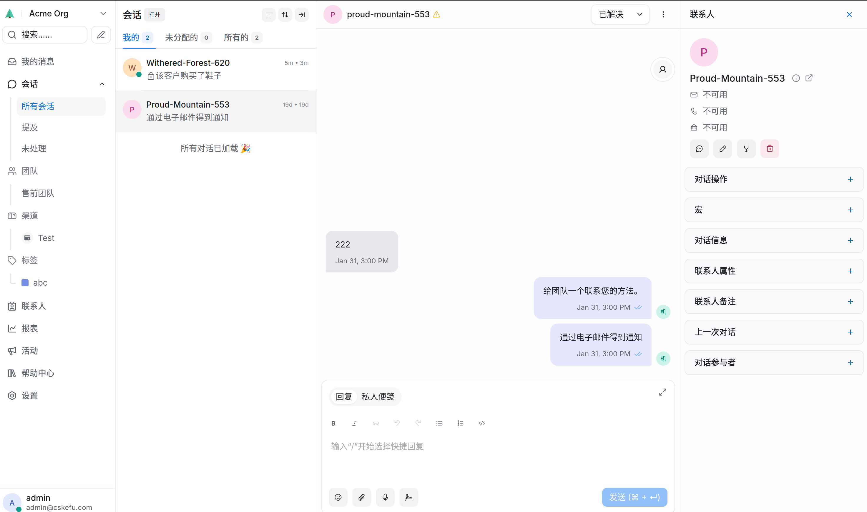- 转接他人: 如果问题超出了你的处理范围,可以一键转交给其他坐席或特定的专业团队(Team)。